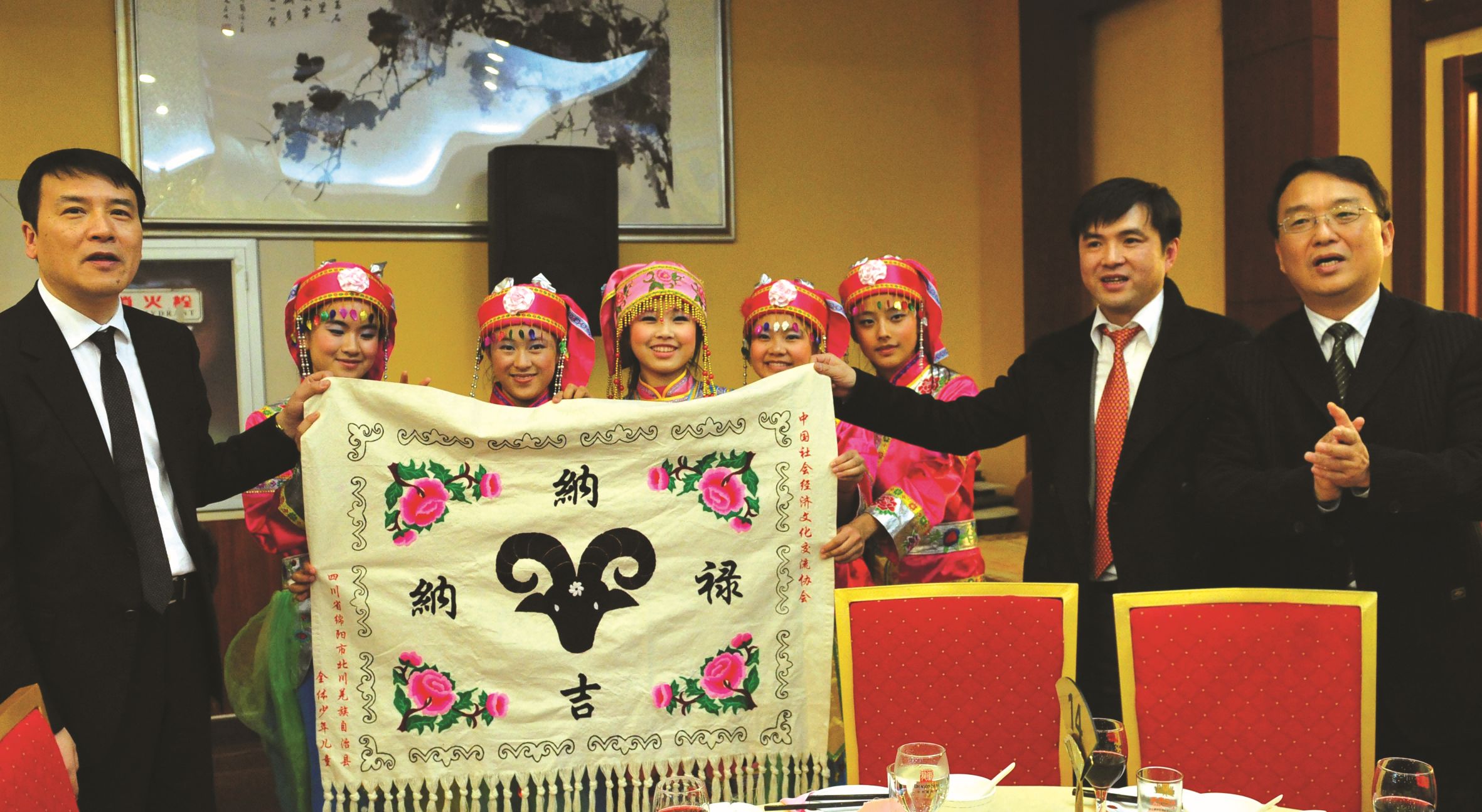 “5·12”汶川地震期间,协会原会长叶小纲、秘书长刘彤及原副秘书长莫雪峰亲自赶往地震灾区看 望北川曲山小学的羌族同学们,带去了协会的关怀与祝福并赠送了慰问礼物。此次年会上,5 名羌 族小朋友特意从遥远的的家乡赶来向大会献上歌舞表演《美丽羌山一幅画》,并代表羌族人民将象 征着吉祥如意的羌红,献给党和国家领导人,以表示家乡人民对党和国家领导人的爱戴及感激之情。
