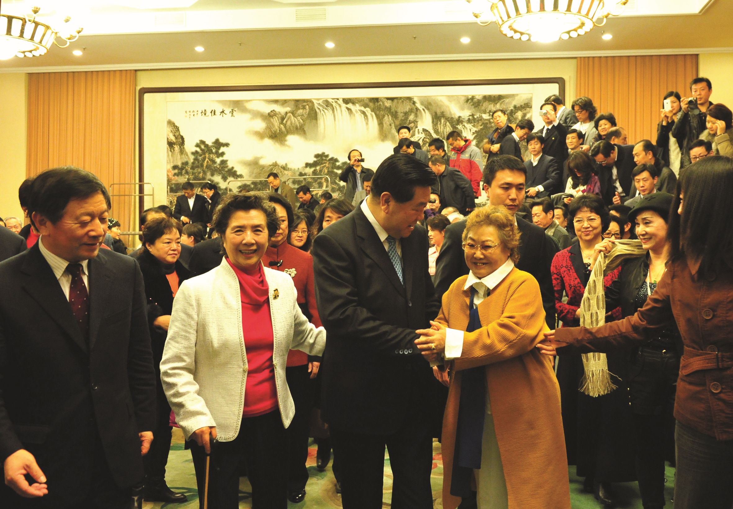 第十一届全国政协主席贾庆林和第十一届全国政协副主席郑万通等领导与众位艺术家亲切交谈